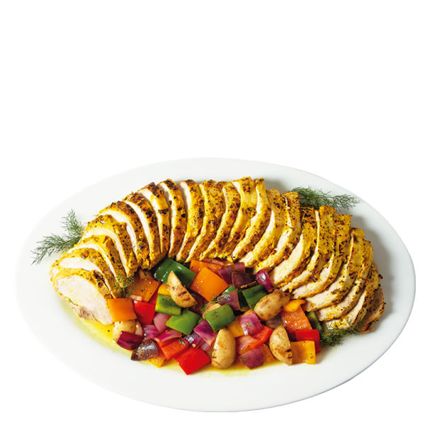 Delicioso lomo de puerco marinado con una mezcla de mostaza Dijon, condimentos y especias de la casa.