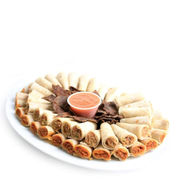 Burritos de carne con chile, burritos de carne machaca preparada, porción de carne seca con chile y salsita botanera.