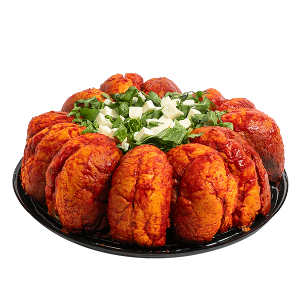 Mini pambazos, bañados en salsa regional, relleno de papas con chorizo Rancho el 17, acompañado de salsa, queso panela y lechuga.