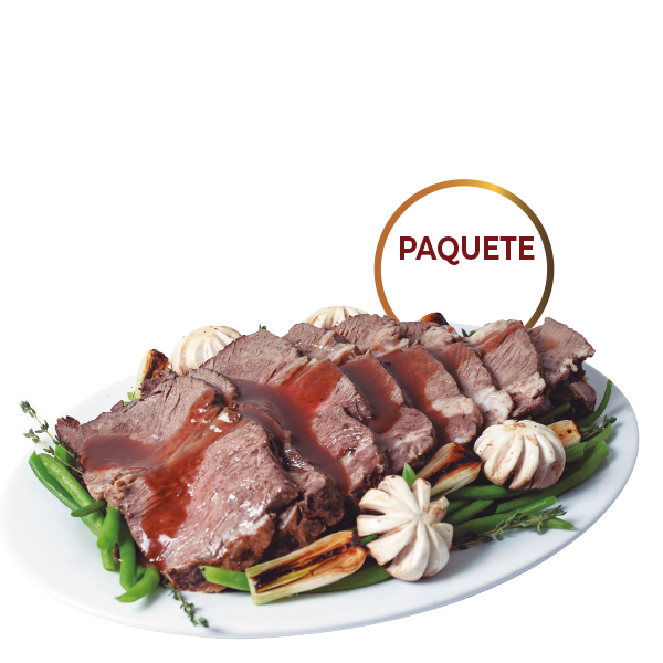 Diezmillo al vino tinto horneado, acompañado de puré al gratín ensalada Bali y delicioso postre a escoger (dulce de bombón o peras al vino tinto).